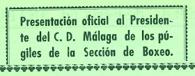 "Un sencillo acto ha tenido lugar en la secretaría malaguista, teniendo como protagonistas los veinte púgiles que tiene enrolados en su sección de boxeo el Club Deportivo Málaga...".